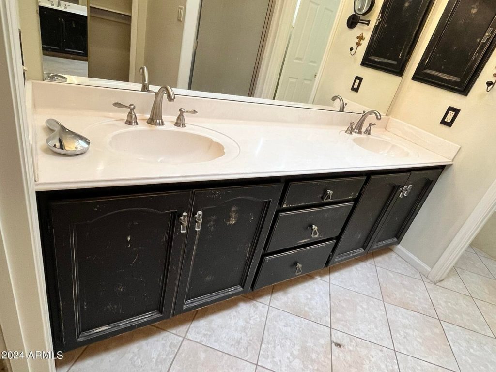 - The primary bathroom has dual closets with organizers, dual vanities, charming chandeliers, a separate shower, and a soaking tub to melt away a stressful day.