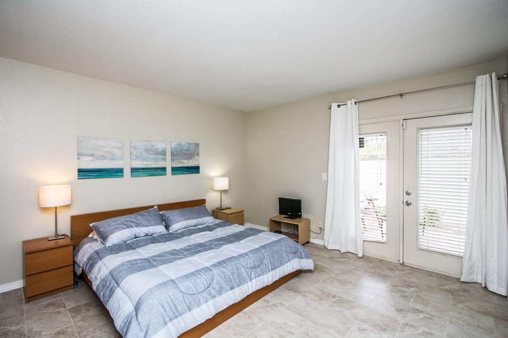- The guest bedroom features a private patio and direct access to the front entry that will wind you down to the community pool and tennis courts.