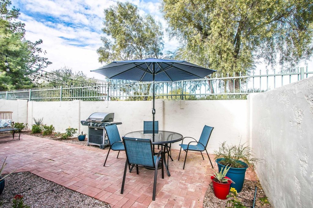 - The Master offers two closets and private access to the serene backyard with a paver patio, outdoor seating, and an umbrella.